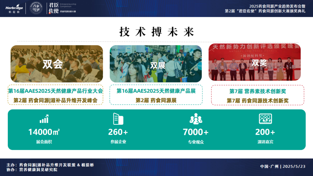 技术搏未来|双会 双展 双奖(第16届AAES2025天然健康产品行业大会&展、第2届药食同源滋补品升维开发峰会&展、第7届中国健康好技术之营养素技术创新奖&药食同源技术创新奖)将于10月24-26日在南京国际展览中心(新庄)正式开启!