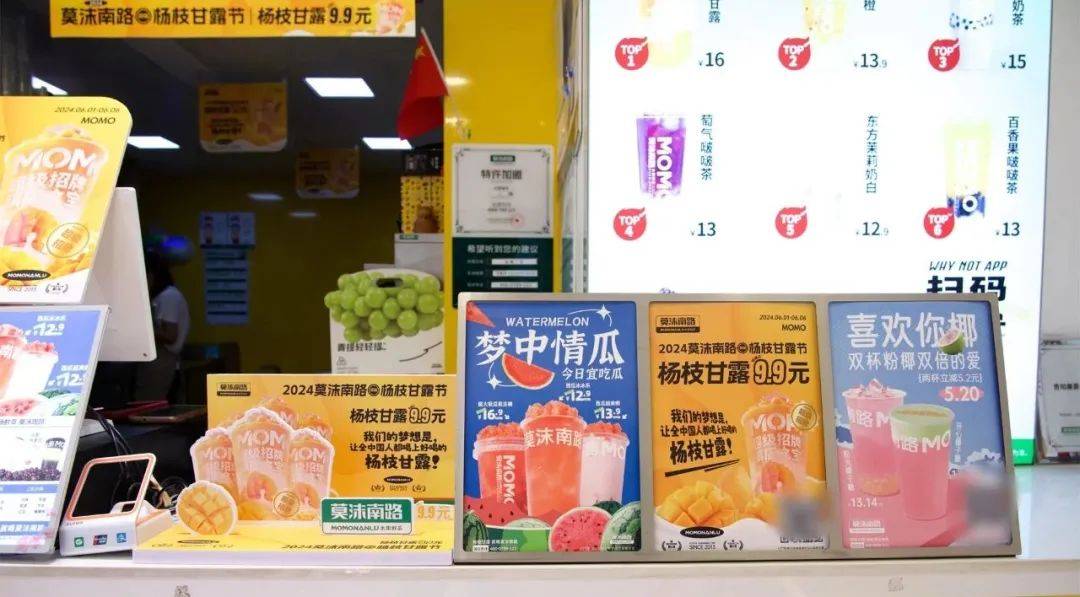 位于山东的莫沫南路,做了一次大胆的尝试,创新“杨枝甘露鲜果茶”品类,用杨枝甘露+鲜果的组合,实现了超40%的销售占比。在大品牌纷纷下沉加密的当下,不仅守住了阵地,还实现了22%的增长。