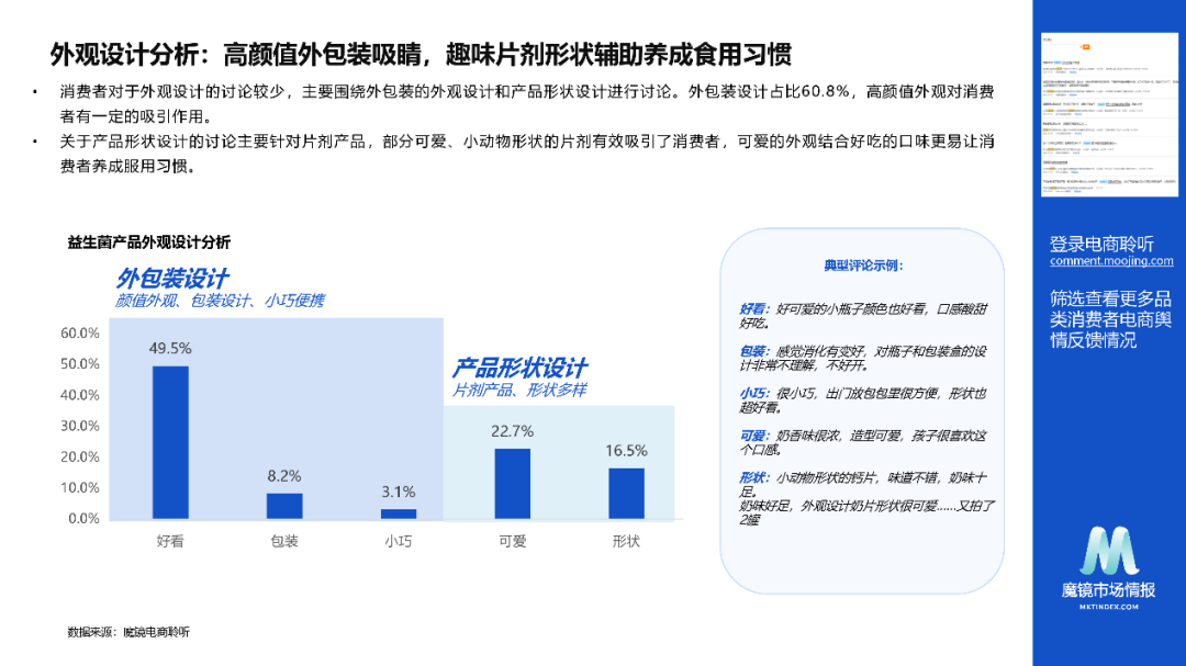(8)外观设计分析:高颜值外包装吸睛,趣味片剂形状辅助养成食用习惯