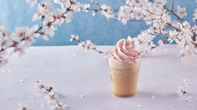 比如樱花季,很多品牌都会将奶油顶变粉。有的通过则用火龙果、抹茶粉、藻蓝蛋白等为奶油顶上色,增加产品美感和氛围。