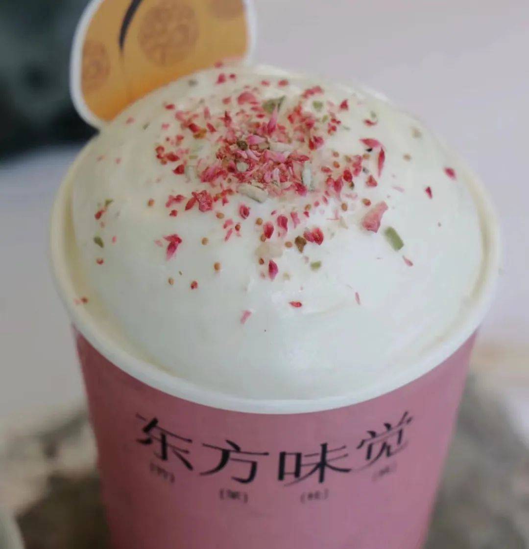 给奶油顶增加风味也是一种差异化思路,如将桂花、茉莉花提取液、风味糖浆等融入奶油顶,让一杯饮品变得更有层次。