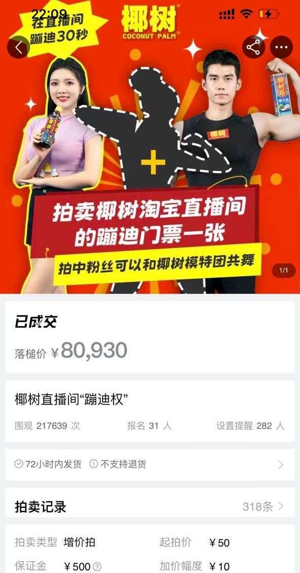直到6月1日晚,一名神秘买家以8.093万元的价格拍下“蹦迪权”。椰树土味营销的风向出现了新的维度。