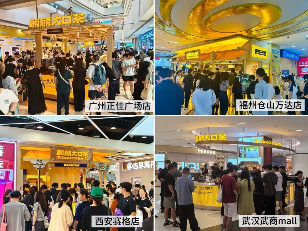麒麟大口茶开店渠道采取“掐尖”原则,例如深圳万象天地、西安赛格广场、广州正佳广场等都是全国排名top级的顶流,想进入且拿到好位置门槛极高。