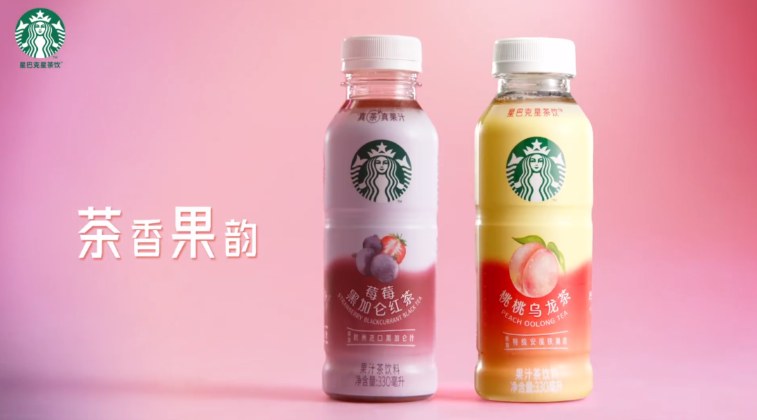 今年10月,星巴克在微信视频号宣布推出瓶装果汁茶新品:桃桃乌龙茶和莓莓黑加仑果茶。其中桃桃乌龙茶采用安溪铁观音作为茶底,加入原榨桃汁,不添加速溶茶粉。