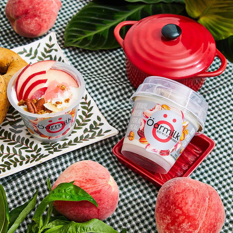 今年5月,吾岛官宣推出格兰诺拉希腊酸奶蜜桃味新品。该产品含有15g格兰诺拉谷物层、120g希腊酸奶层和30g果酱层,其中果酱是由春雪蜜桃制成,蜜桃添加量≥50%。