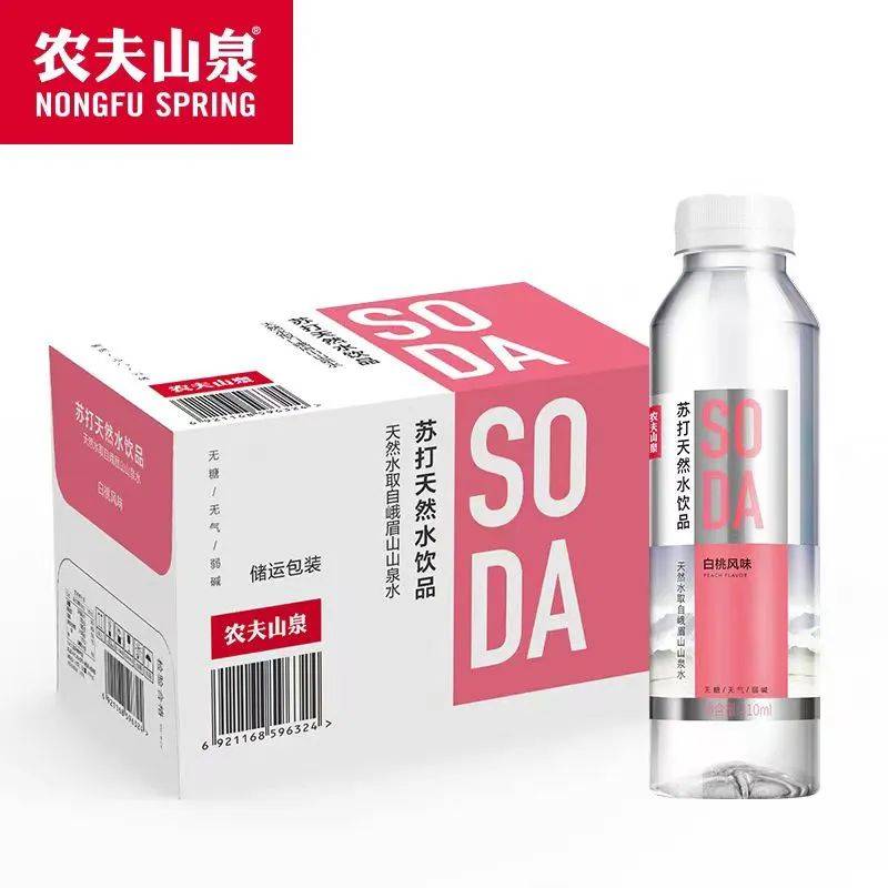 农夫山泉天然苏打水饮品也有白桃口味,取水自千岛湖、丹江口等水源地,水源含有钾、钙、镁、偏硅酸等多种矿物元素,0糖0脂0山梨酸钾,碳酸氢钠添加量200mg/L。