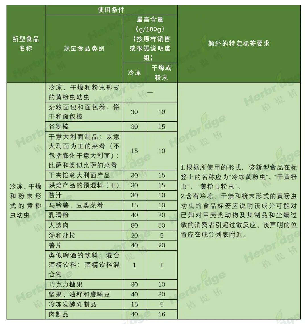 根据修订的欧盟委员会条例(EU)2017/2470,涉及“冷冻、干燥和粉末形式的黄粉虫幼虫”修订内容如下: