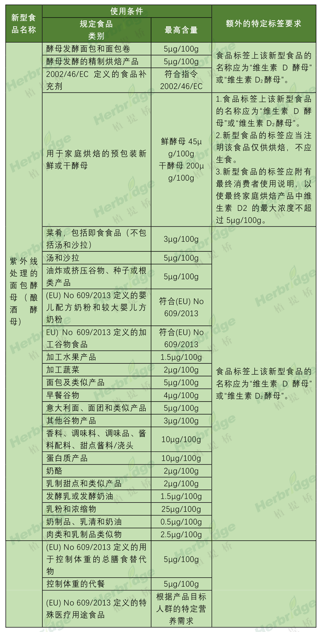 根据修订的欧盟委员会条例(EU)2017/2470,涉及“紫外线处理的面包酵母(酿酒酵母)”修订内容如下: