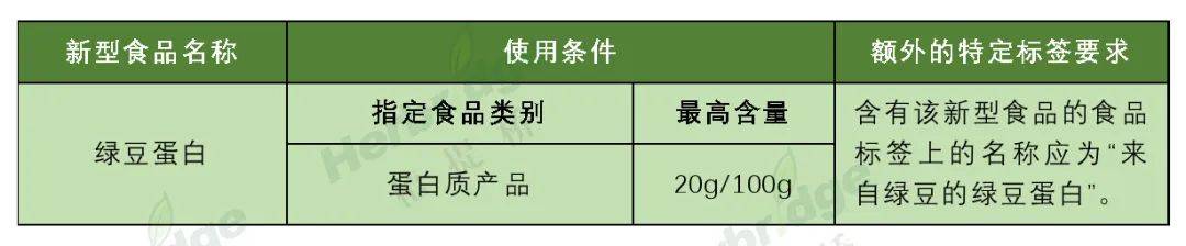 根据修订的欧盟委员会条例(EU)2017/2470,对绿豆蛋白的要求如下: