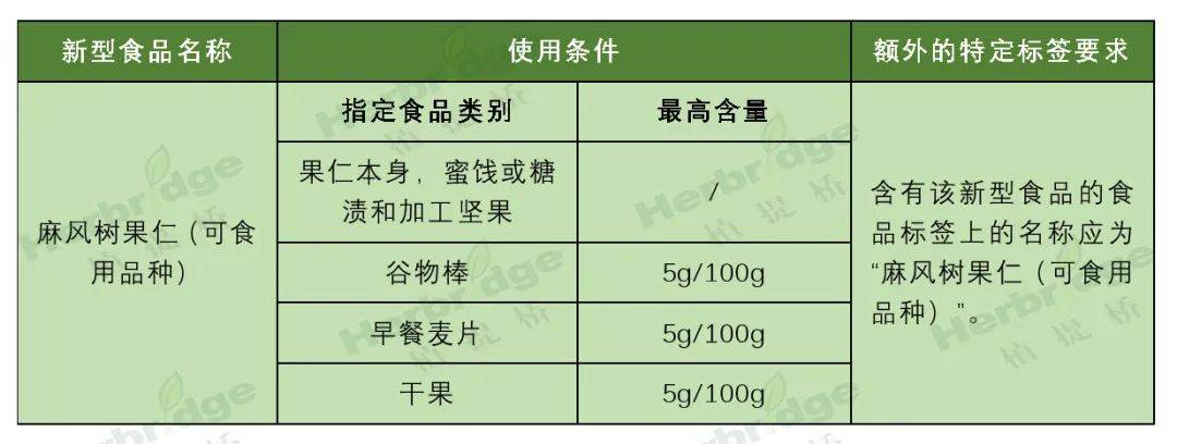 根据修订的欧盟委员会条例(EU)2017/2470,涉及“麻风树果仁”修订内容如下: