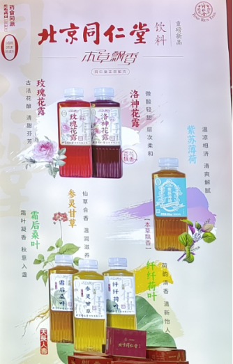 同仁堂旗下同仁堂饮料,推出酸梅汤饮、金银甘菊饮、桂圆姜枣饮、玫瑰花露、紫苏薄荷、霜后桑叶、参灵甘草等产品,更具传统底蕴和古方传承的老牌药企在功能草本饮上更具“降维打击”。