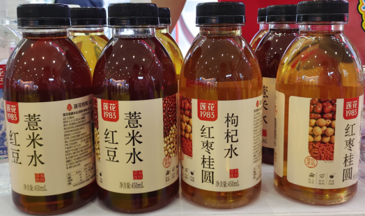 莲花健康水业(深圳)有限公司旗下的莲花1983也以红豆薏米水、红枣桂圆枸杞新品切入养生水赛道。