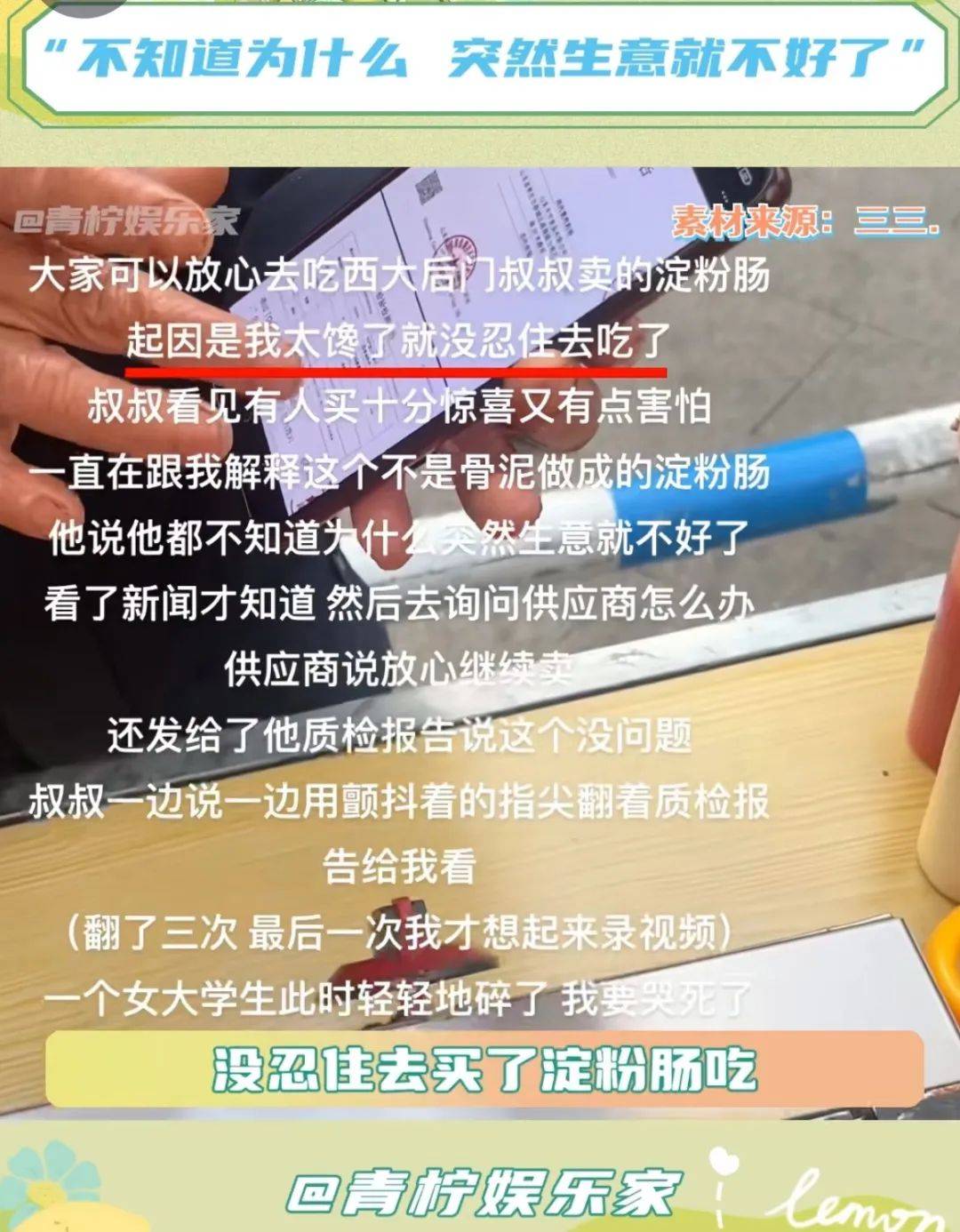 生产淀粉肠的厂家叫苦不迭,经销商的淀粉肠顷刻间就经历了一波退货潮,卖淀粉肠的商贩一觉醒来天都变了。