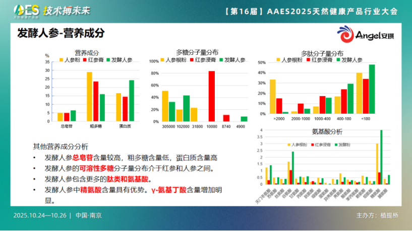 此外,安琪纽特还针对发酵人参营养成分对比以及风味成分对比等。团队发现,与红参膏、人参粉相比: