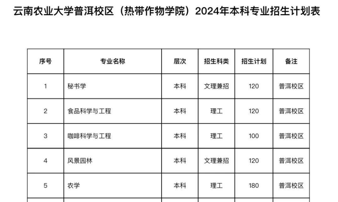 6月初,云南农业大学热带作物学院公布的2024年本科专业招生计划表显示,咖啡科学与工程专业计划招生100人。
