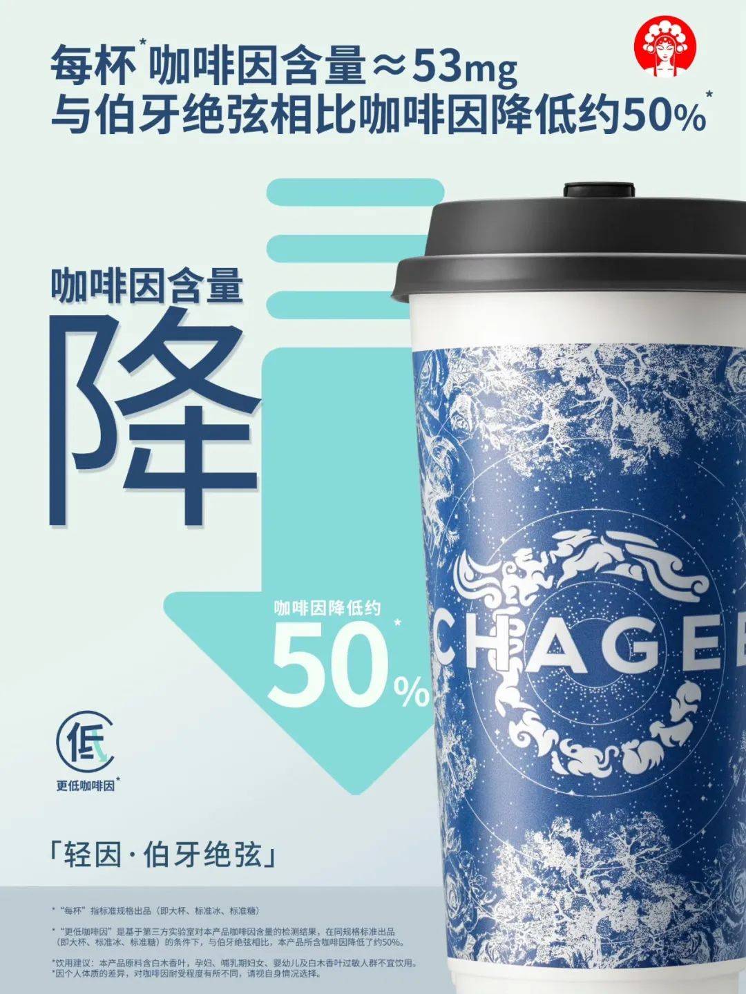 2025年3月,霸王茶姬首次在全国省会城市推出轻因系列新品,包括轻因·伯牙绝弦和轻因·伯牙鲜沏,同时在全国范围内上线“轻因专区”,将青青糯山、白雾红尘、琥珀光、七里香纳入轻因专区,专区产品咖啡因含量较原版普遍下降近50%。5月,霸王茶姬又在全国范围上线了轻因·花田乌龙,咖啡因含量同样降低50%。