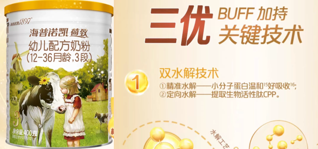 为了让奶粉更接近母乳的营养结构,采用多项先进技术,包括双水解技术、HMO 模拟母乳技术和 Pro59 黄金配比技术。