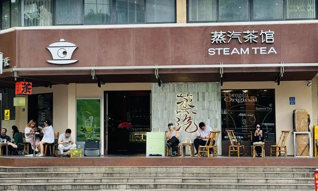 蒸汽茶馆就没有泡茶桶,一台“孤零零”的萃茶机格外引人注目。打卡评论中,有不少顾客提到“像缝纫机一样的机器做茶,在成都还是第一次见到。”