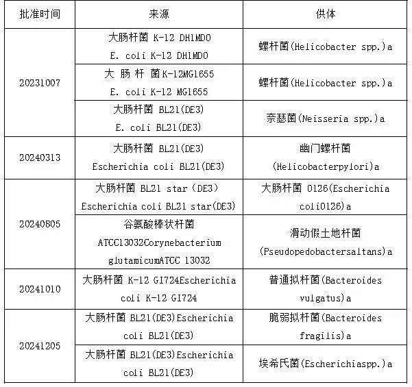 目前2’-岩藻糖基乳糖共有5次获批“食品营养强化剂新品种”,共批准了9套生产菌及供体信息。