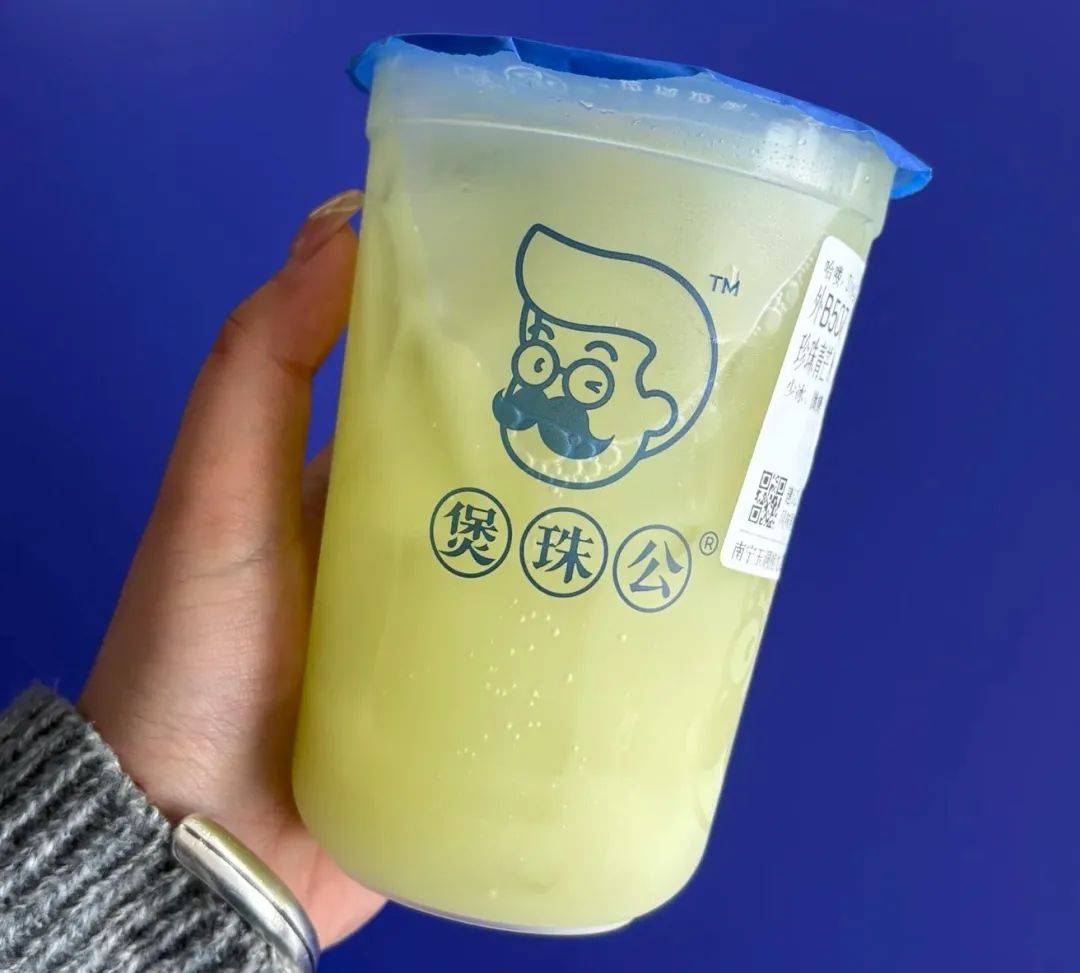 紧接着,来自广西的煲珠公也将青芒做进饮品,部分榨汁、部分切粒,一改往日的浓郁口感,推出了广西酸嘢版本的“珍珠奶茶”,风味突出。