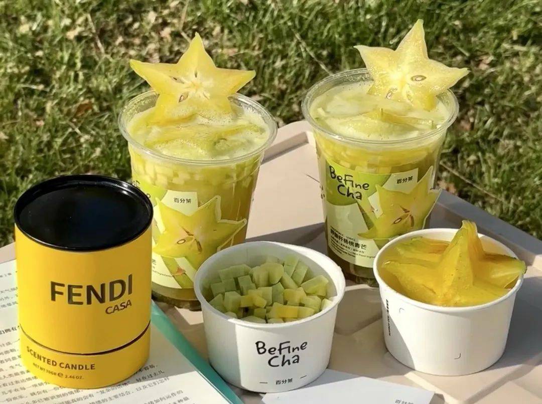 同一天,百分茶上新野酸酐杨桃青芒,云贵野酸酐搭配杨桃、青芒带来的山野风味,让网友直呼“仙品”。