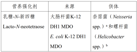 已经批准用于乳糖-N-新四糖的生产菌信息