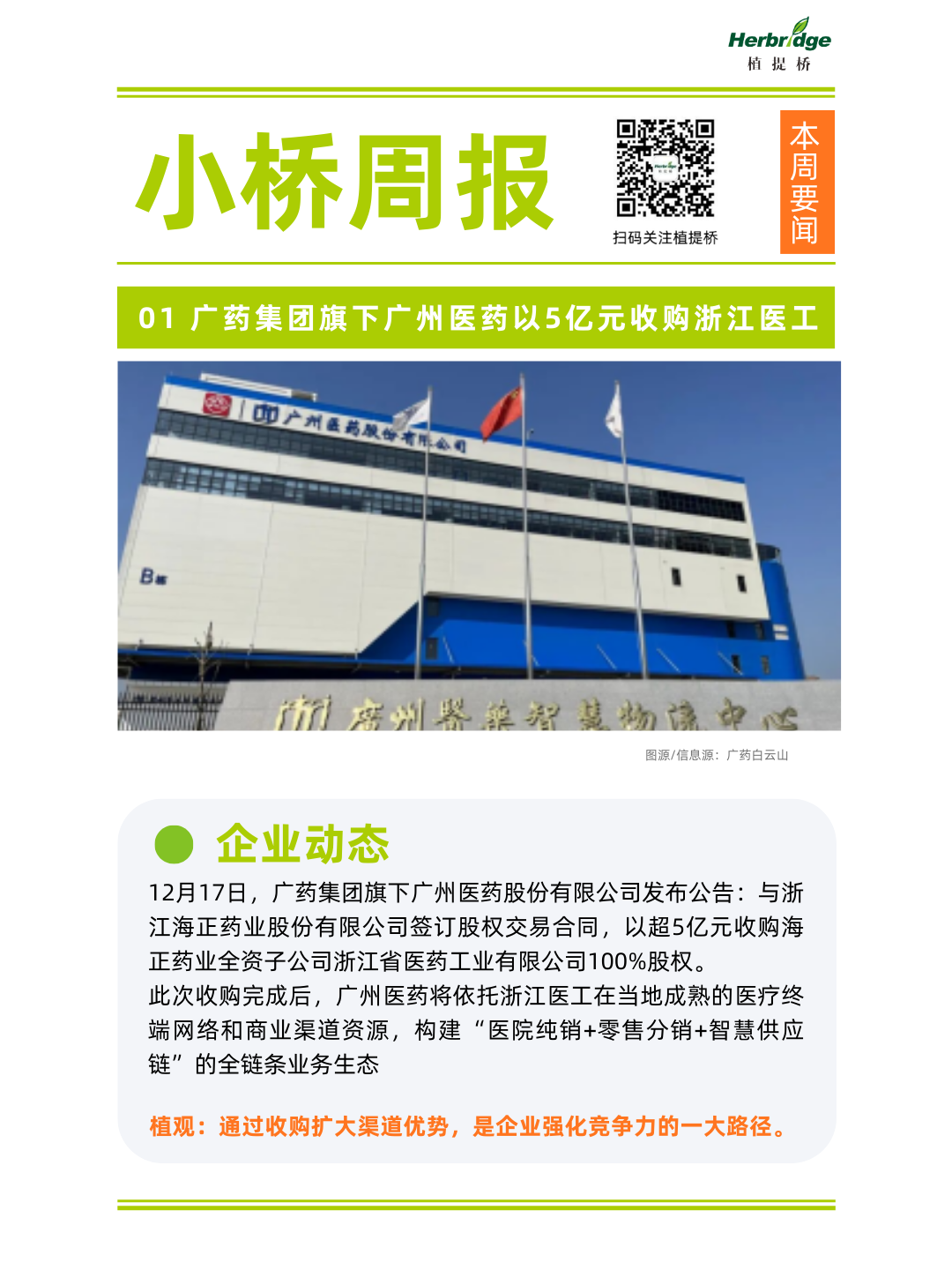 1. 广药集团旗下广州医药5亿元收购浙江医工