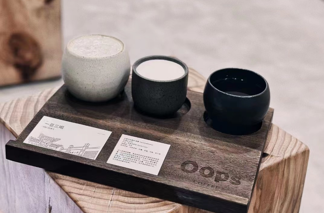 其中,西安的Oops,卖得最火的产品是“一豆三喝”,话题性最高的是“咖啡实验室”,一次能喝到5种不同口味的冷萃咖啡,都是围绕咖啡本身的产品。