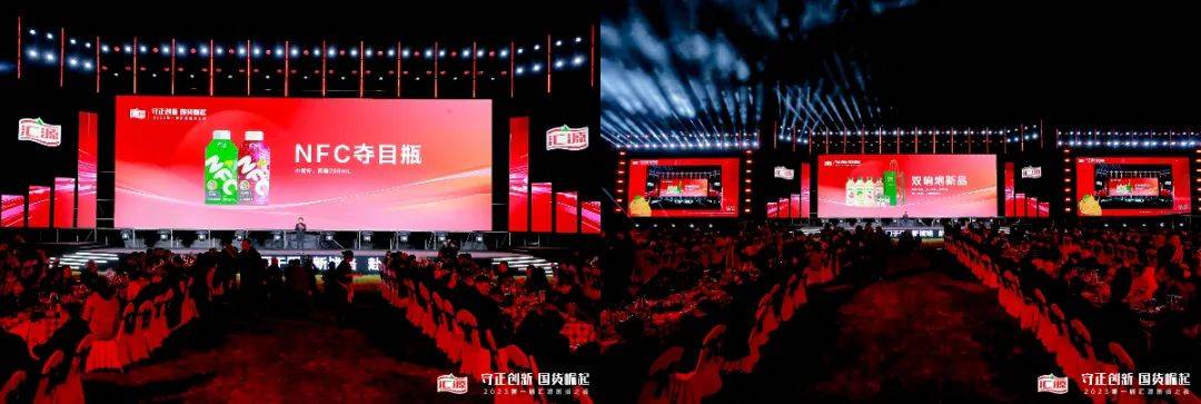 以打造更符合国民消费趋势的产品为目标,汇源在今年推出双响炮产品,被用户称为“喝得起”的果汁。品牌还与康美公司合作,推出第一款“夺目瓶”NFC系列。在本次国货之夜,汇源也提前发布了新品,想给消费者带来“极致性价比”。