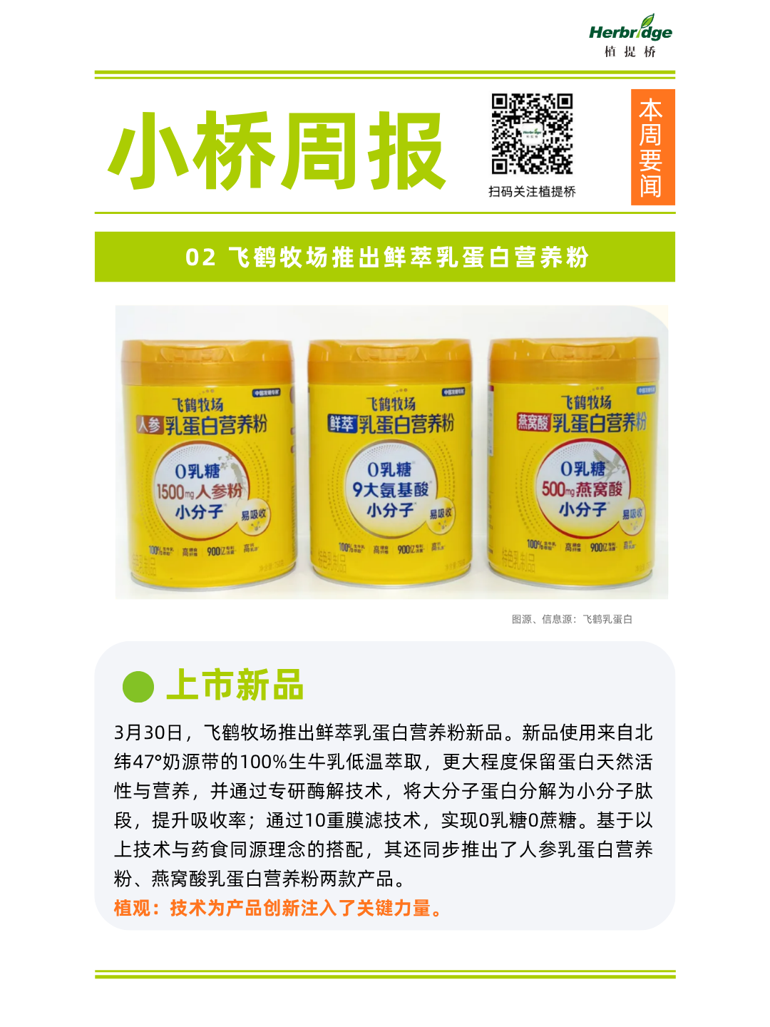 2、飞鹤牧场推出鲜萃乳蛋白营养粉