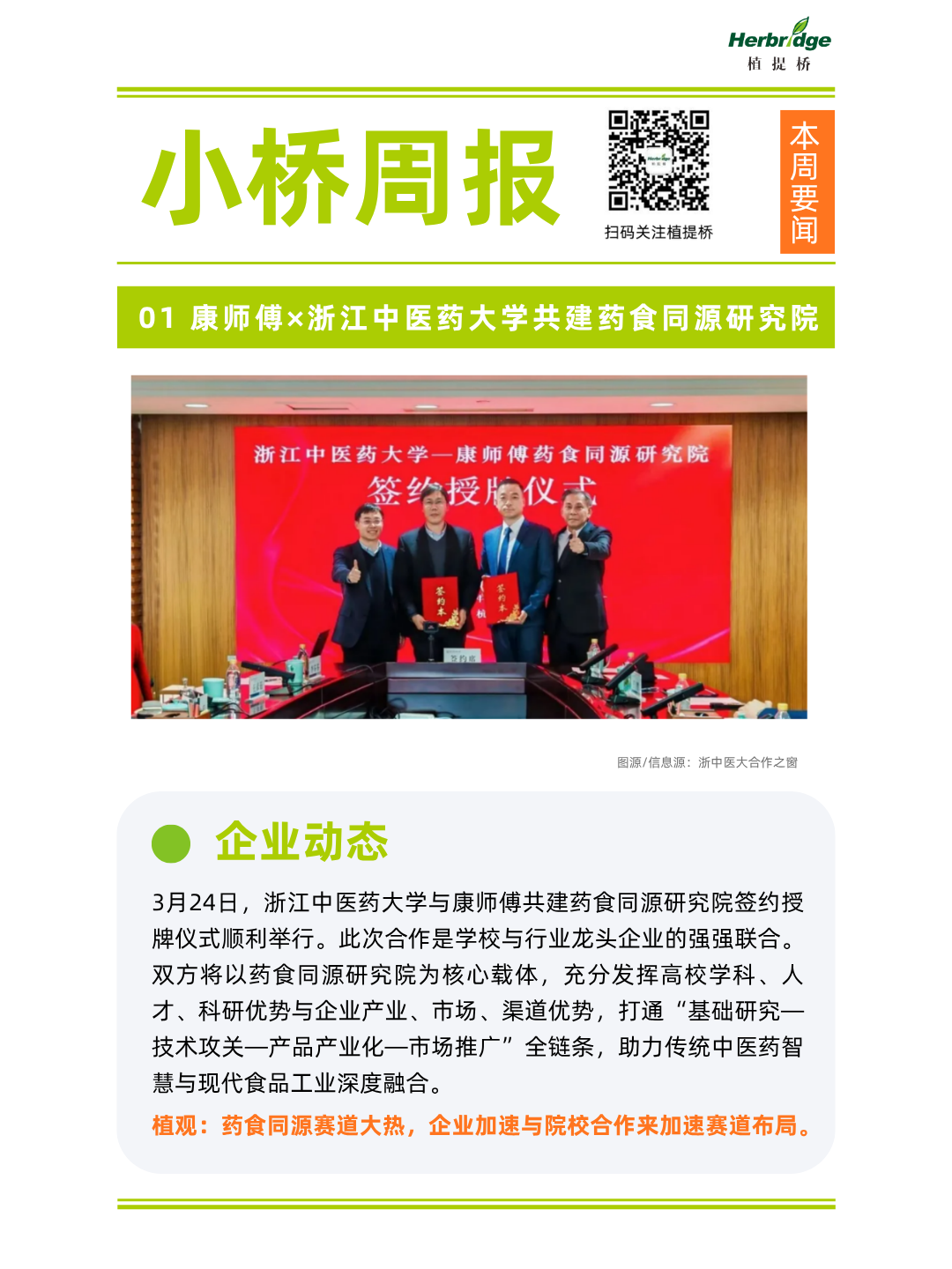 1、康师傅×浙江中医药大学共建药食同源研究院