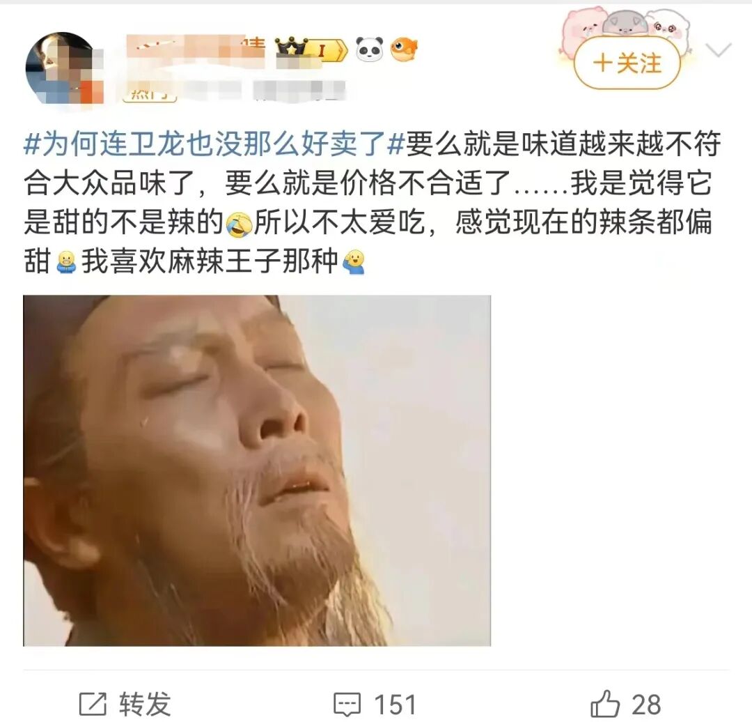 但看网友的反应,卫龙辣条销量的下滑远不止这个原因。
