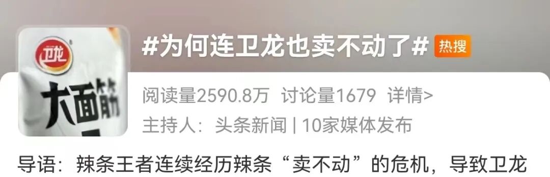 卫龙辣条销量下滑的消息立刻冲上了热搜。