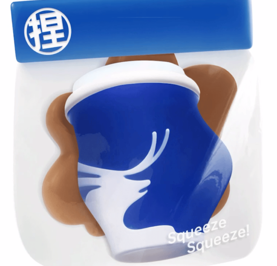 饮品品牌的常见操作是,将捏捏作为联名周边推出,以增加联名活动的可玩性,这类捏捏的外型往往做成联名IP的样子。