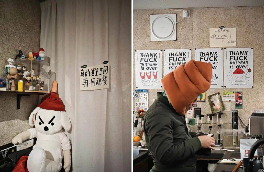 顺德的回炉制物咖啡馆,在店内设置各种“发疯”的文案。
