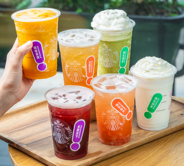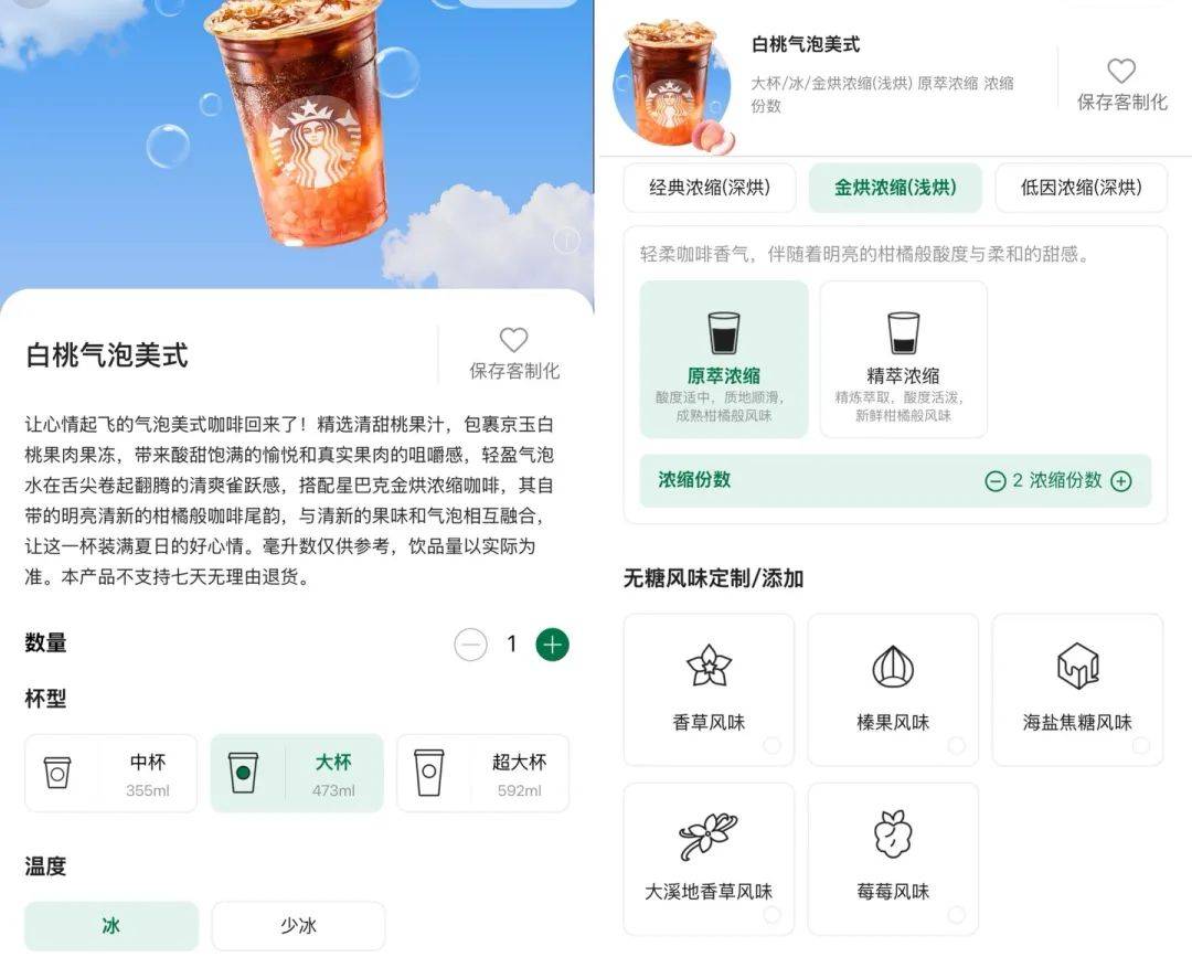在星巴克,顾客点单时可根据喜好定制,从基础的增加咖啡浓度、调整甜度、更换不同的奶基底或茶底,到加椰浆、摩卡酱、焦糖风味淋酱、可可碎片等定制饮品风味。