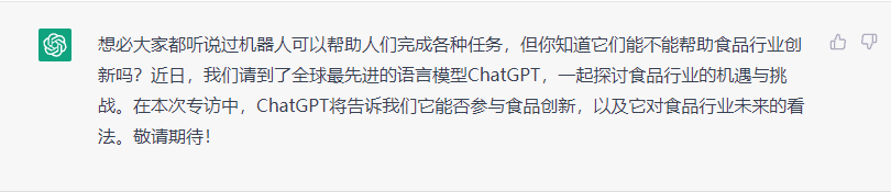 首先,我们和ChatGPT聊一聊,对食品创新的看法。