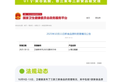 法规动态|乳骨桥蛋白、L - 麦角硫因等多款新食品原料被受理