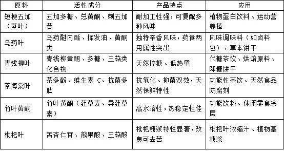 ▲叶类原料,类似于竹叶这种食品原料,除了提取其有效成分制成保健食品外,普通食品可开发成叶茶、糕点、调味酱;以及高纤维零食、运动饮料、发酵饮、发酵酒等;可充分利用其膳食纤维、天然色素等优势,开发绿色、多元化口感的食品。