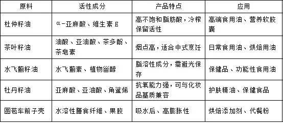 ▲相比于菜籽油、花生油等产品,杜仲籽油、茶叶籽油、水飞蓟籽油等,就可称之为“小众籽油”,小众籽油含有丰富的不饱和脂肪酸,除可作为食用油外,还可成为特定配方食品、中老年保健食品等优质功能原料。