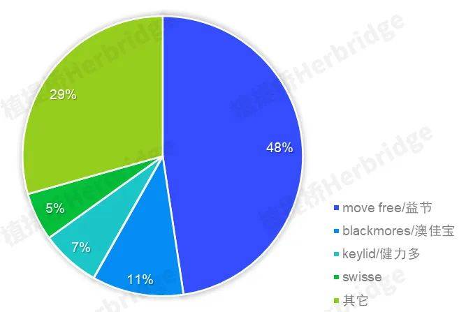 2022年度线上海外骨关节膳食补充剂主要原料市场份额