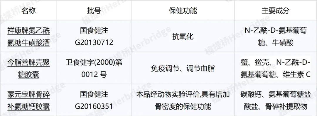 以N-乙酰氨基葡萄糖和氨糖为主成分的保健食品(摘录)