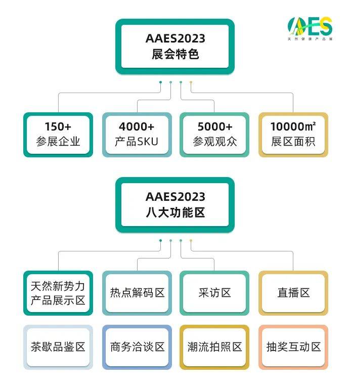 AAES2023天然健康产品展相较往期产品展,展区面积、展商数量、产品数量再上新台阶。同时,特设八大功能区,ToB、ToC全覆盖,在这里,150+展商带来的4000+重磅级产品,可助您洞察功能产品、健康领域爆款产品、创新产品及潮流趋势,获取成功打造新品、爆品的灵感。