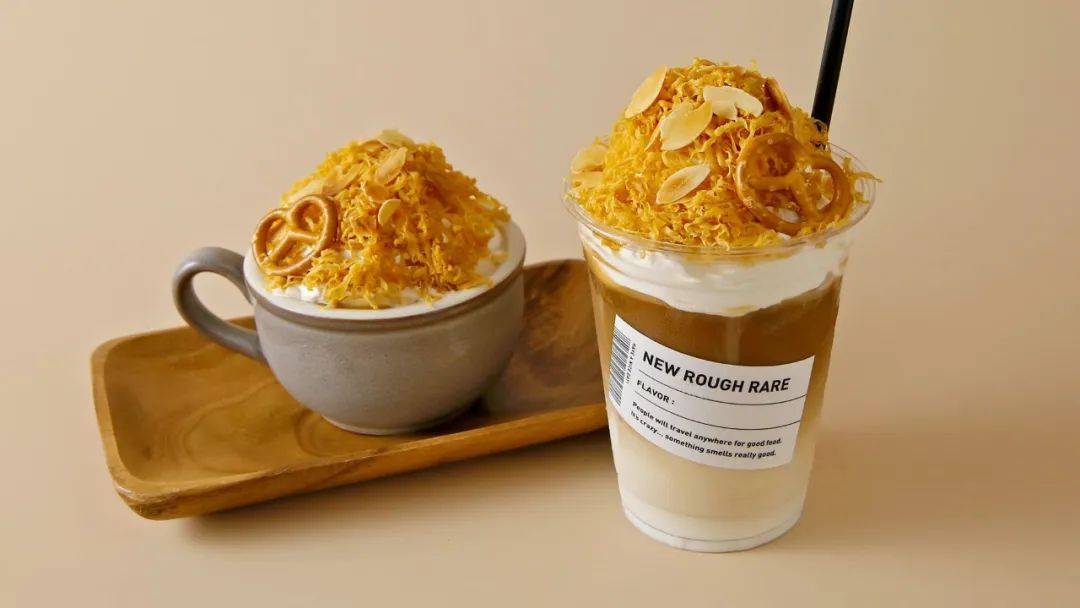日本神户一家名为New La Flair的咖啡厅今年新推出的秋季菜单上,有一款“奶酪栗子拿铁”,顶部堆满棕色奶酪,可以感受甜咸味的奶酪与饮料、生奶油的甜味之间的平衡。