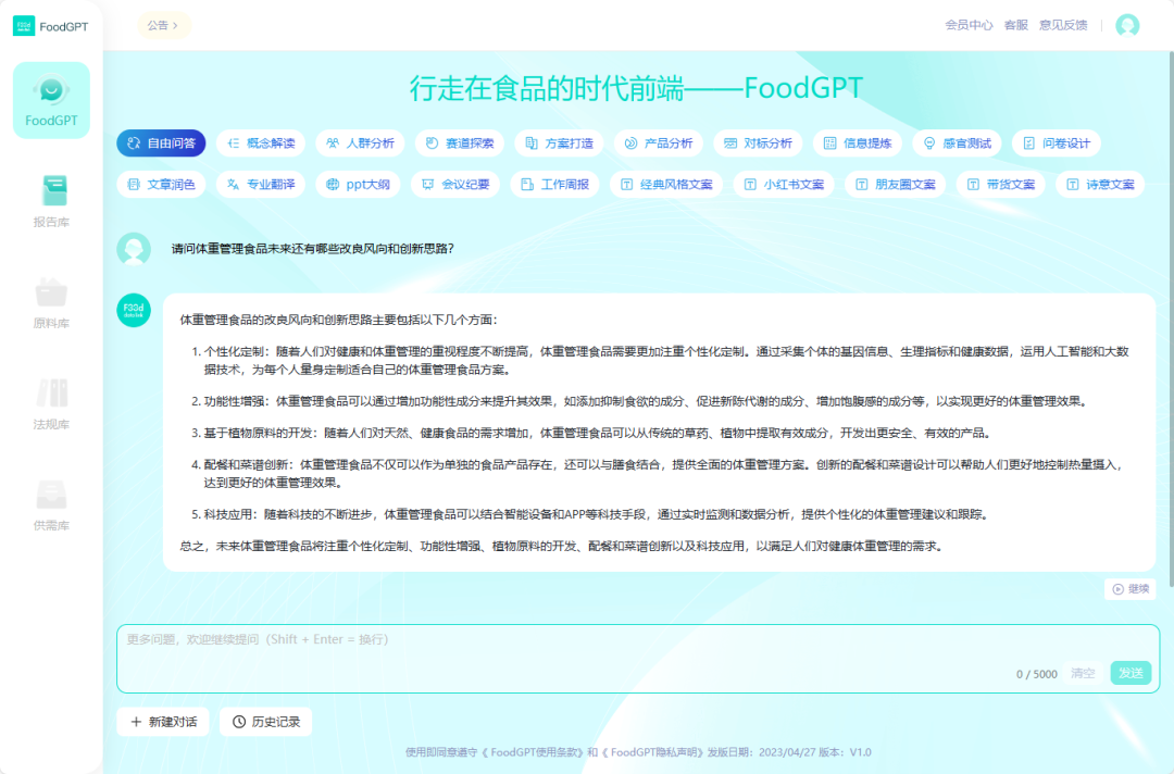 面对日益拥挤的赛道,企业应当如何主动求变,入局体重管理食品市场的企业还有哪些出路呢?借助“FoodGPT”的“AI大脑”,我们也尝试探索体重管理产品的未来创新方向。
