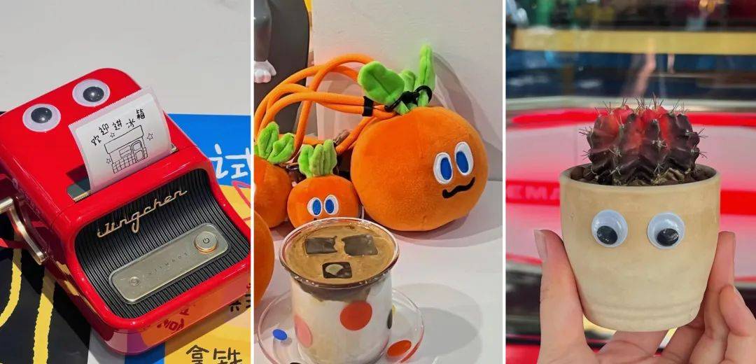 而且店里的一切物件都有一双大眼睛,从冰箱门,到咖啡机、饮水机、花盆、杯子,甚至店里售卖的饼干,无端变得可爱起来。