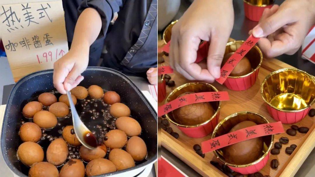 此外,咖啡蛋挞、咖啡茶叶蛋也在全国范围内流行,中西合璧,被网友笑称“特别会整活”。