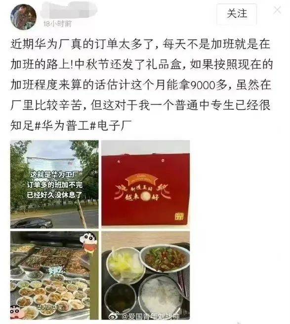 前几天一位在电子厂上班的工人发了一个朋友圈火了,他说因为最近华为订单太多了,公司不仅发了中秋礼盒,而且掐指一算虽然天天加班,但这个月能拿9000多元。