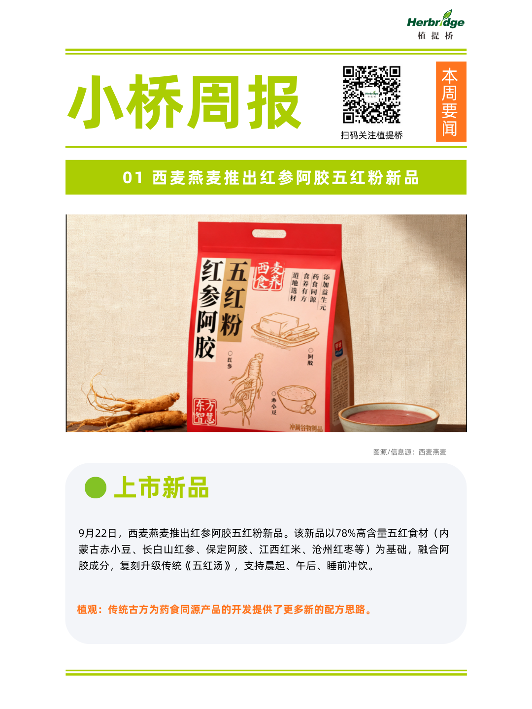 1、西麦燕麦推出红参阿胶五红粉新品