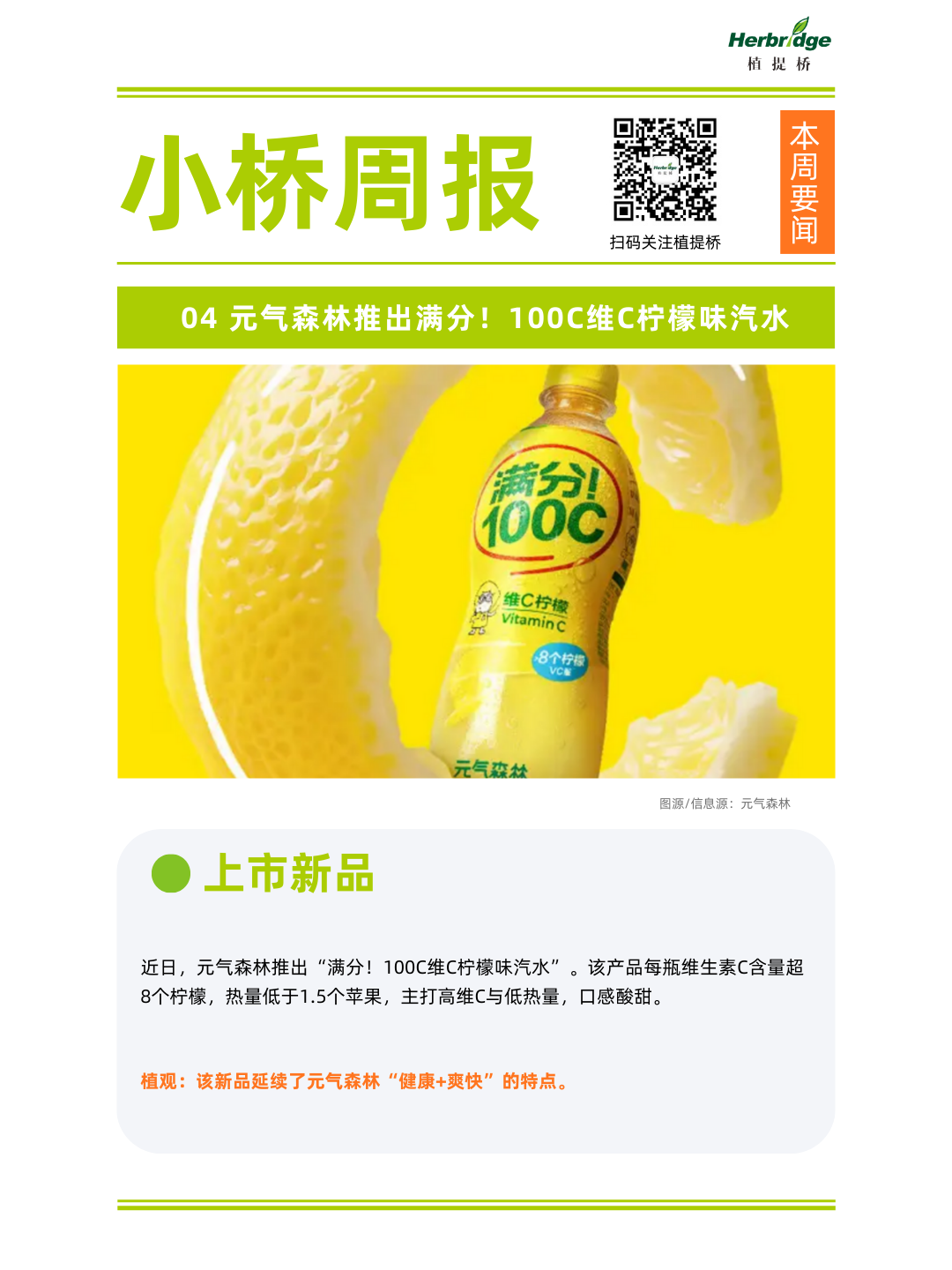 4、元气森林推出满分!100C维C柠檬味汽水